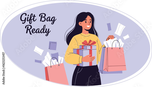 Vector illustration of woman holding broken pipe and calling to emergency service. Flat style design element, icon isolated on white background.