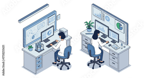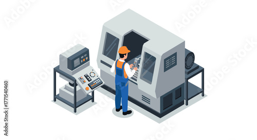 Engineer repairing and fixing server network in data center, flat vector isometric illustration. Server maintenance and repair services.