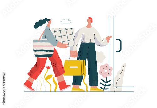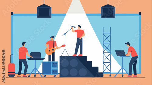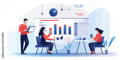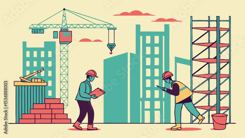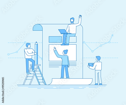 Engineers cartoon characters creating robot in tech robotics laboratory, flat vector illustration. Artificial intelligence technology, robot invention. Robotics science.