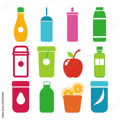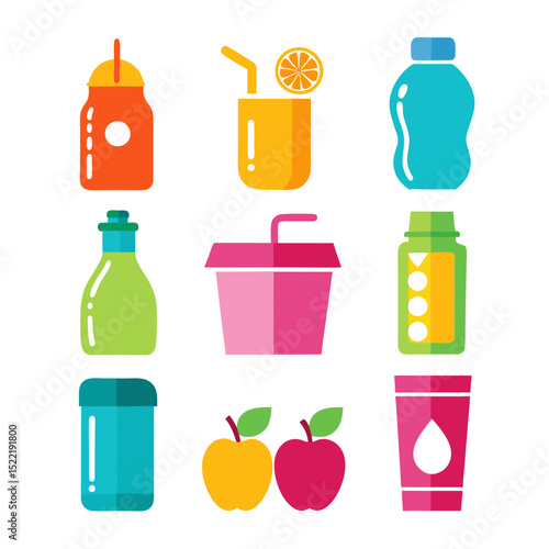 Equipment and accessories for sports nutrition, fitness supplements, protein cocktail and replenish body vitamin preparation vector illustration. Various bottle and shakers, guide steps of using for cooking