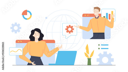 European breakfast landing page design, website banner template set, flat vector illustration. Woman drinking coffee with croissant and macaroon cookies for breakfast. Traditional french morning meal.