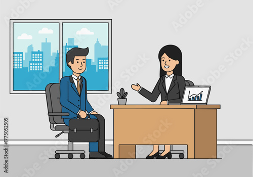 Vector illustration of happy lawyer providing the court with the proof of his client innocence. Evidence flat style design element