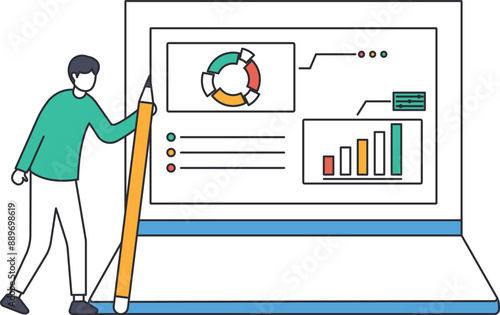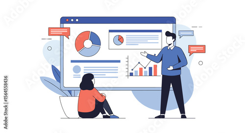 Vector flat style design illustration of young people students passing exam. Online test, questionnaire form, distance education, e-learning, survey, internet quiz concept for web banner, website page