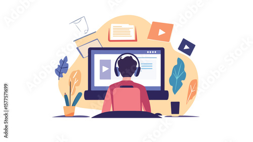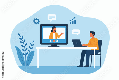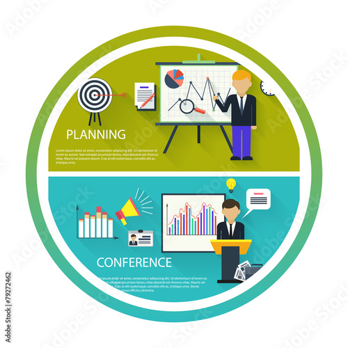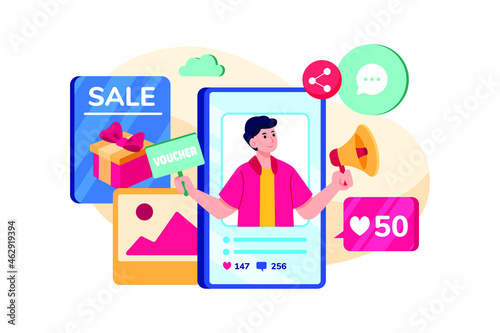 Exhibition booth concept vector flat 3d illustration. Isometric trade show stand mockups, young woman promoter and visitors.