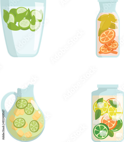 Exotic cocktail mascot cartoon face vector set. Funky character with juicy alcoholic or non-alcoholic beverage illustration. Anthropomorphic drink character isolated on white background
