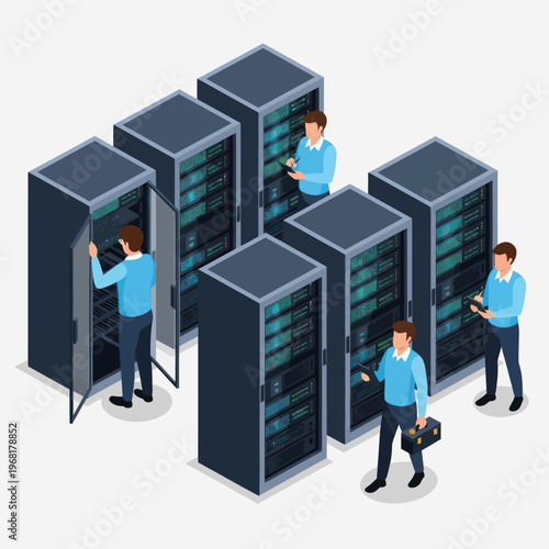 Face recognition access control system vector. Man biometric authentication before data information usage isometric 3d design
