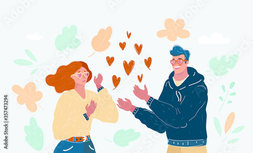 Fake news and disinformation of people vector. Man and woman suffering from information noise illustration. Social media misinformation, true and false message spreading