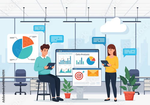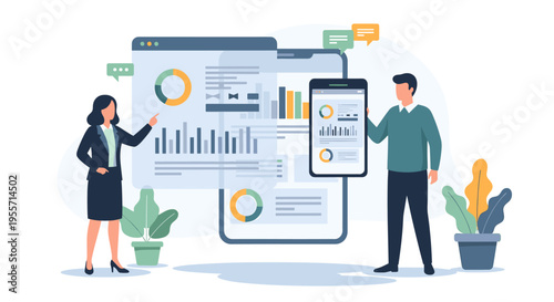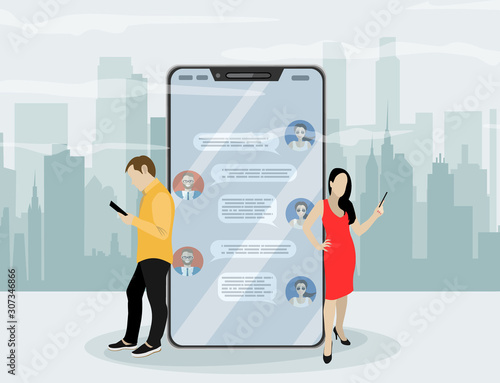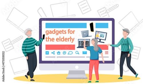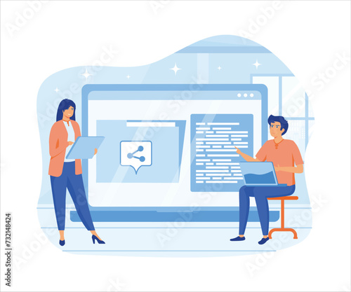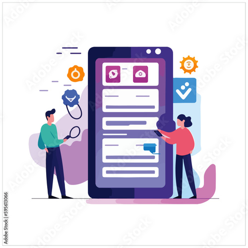 Fake news media information vector illustration. Social disinformation on internet. People reading online fakenews using computer and mobile phone. Wrong info, propaganda and false in network
