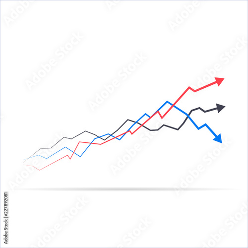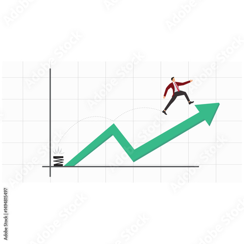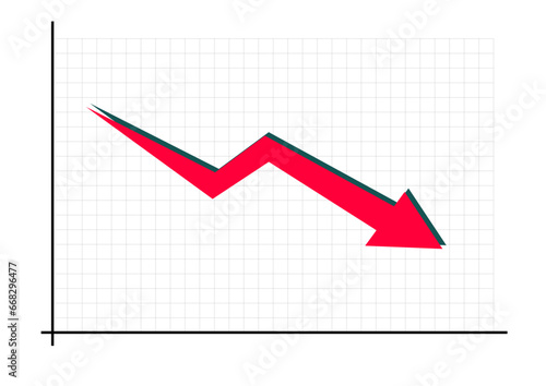 Falling down arrow chart, businessman, money and trophy cup, flat vector illustration. Business failure, collapse, financial problems, bankruptcy, economic crisis.