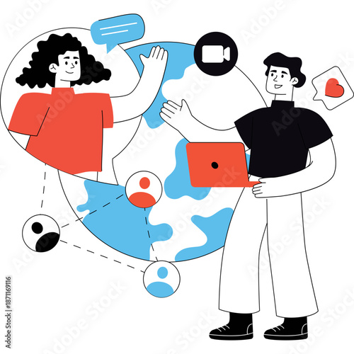 Happy couple planning family budget, vector illustration. Financial planning, money managing and saving concept for web banner, website page etc.