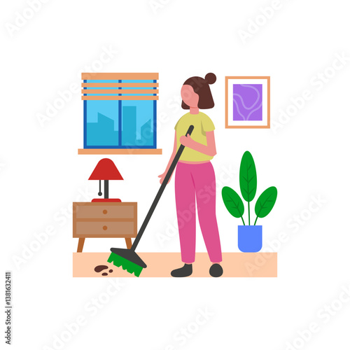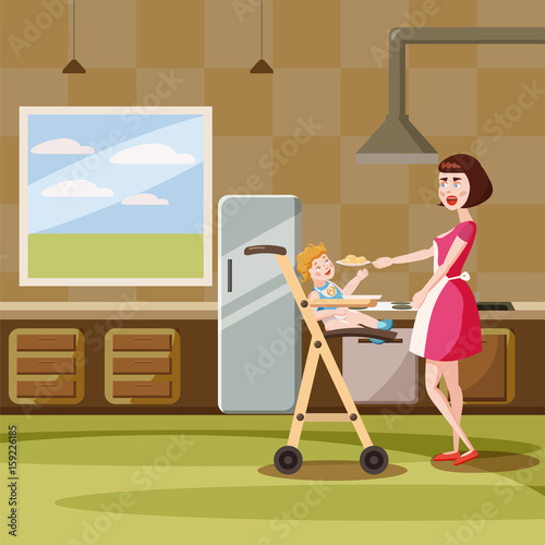 Family clean kitchen and wash dishes together. House cleaning concept illustration. Vector web site design template. Landing page website illustration.