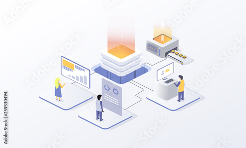 Family cooking, landing page design, website banner template, flat vector isometric illustration. Father, mother and daughter making cookies together in kitchen. Family lifestyle.