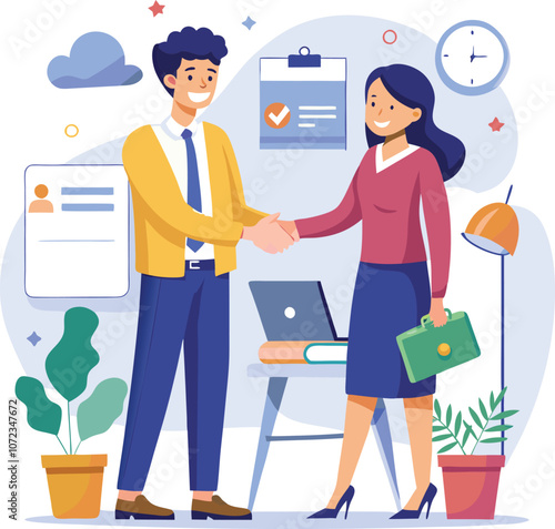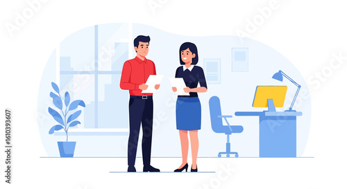Vector man and woman family couple at passport control or check-in desk in airport. Pair of tourists with luggage at aircraft terminal going on summer vacation or journey cartoon illustration
