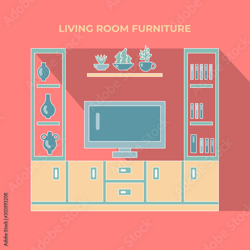 Family couple watch tv set at home. House living room interior with TV. Stay at home concept illustration. Vector web site design template. Landing page website illustration.