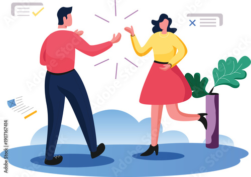 Family divorce and quarreled spouses vector illustration isolated on white background. Angry wife tearing paper marriage contract and frustrated husband trying to stop woman