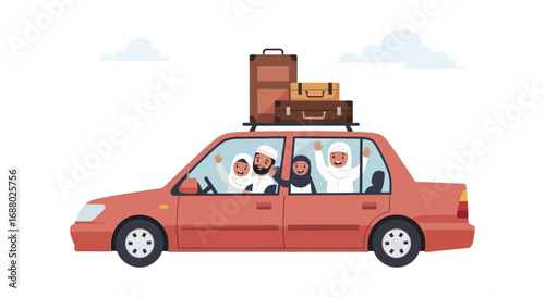 Family going to vacation by car. Travel concept vector illustration in cartoon style.