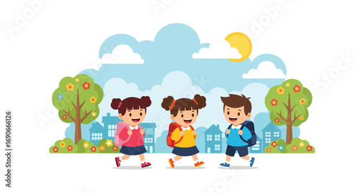 Family having picnic in nature, playing with dog in the park, flat vector isometric illustration. Father, mother and kids spending time together. Family life, relationship. Summer outdoor activity.