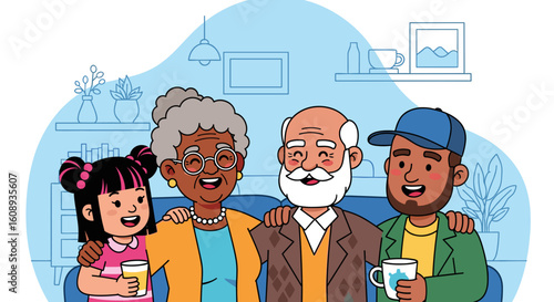 Family sitting in the car looking back. Vector illustration in pop art style, retro comic book. Speech bubble