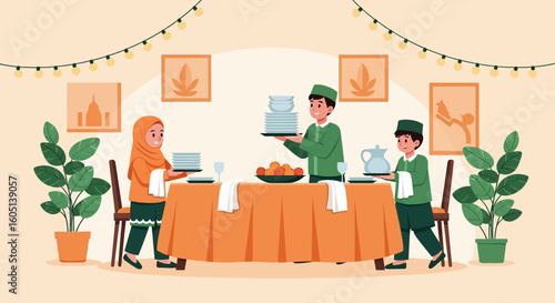 Family with kid buying fish in aquarium in pet shop concept vector illustration. Animal store interior with aquarium and parrot in cage.