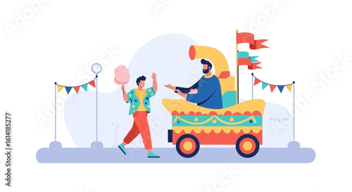 Farm worker cartoon character in garden isolated set. Farmer, gardener, tractor driver, lawnmower at work vector illustration