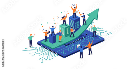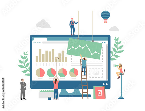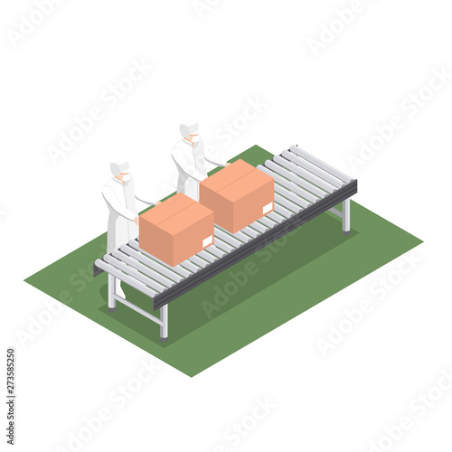Farmer making crop growth analysis in greenhouse using robotics technologies, flat vector isometric illustration. Smart greenhouse horticulture robotics. Smart farming.