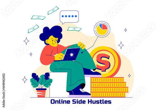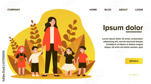 Organic food fresh fruit and vegetable market stall with saleswoman and buyers, vector illustration. Bazar, outdoor grocery store composition for web banner, website page etc.