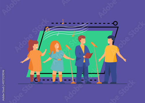 Fashion show scene set, flat vector isolated illustration. Catwalk models, videographer, photographer, fashion designer, journalist male and female characters. Modeling industry.