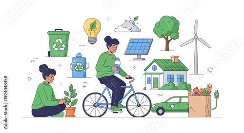 Fast delivery concept vector illustration. Postman, postal worker and client with parcel, florist creating flower arrangement. Mail and flower delivery flat style design elements, schemes, icons.