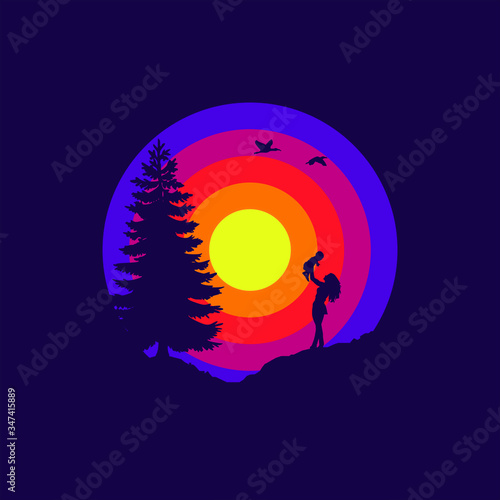 Fat people icon illustration. Vector woman with overweight having stomach problem enjoy junk fast food. Unhealthy lifestyle obesity disease risk, eating disorder concept. Paper cut style
