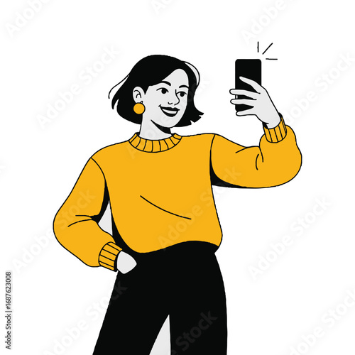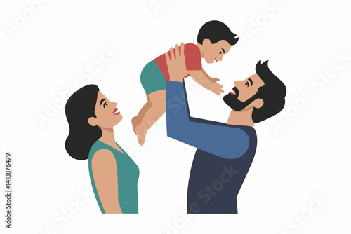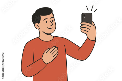 Father and daughter taking selfie on mobile camera vector icon isolated on white background