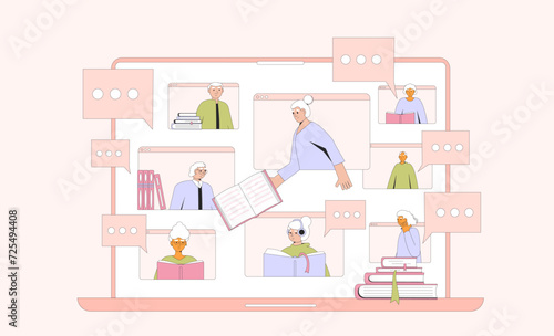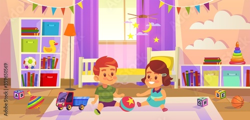 Father and son do morning hygiene routine together in bathroom. Man tooth brushing, boy bathing in bath tub. Concept illustration. Vector web site design template. Landing page website.