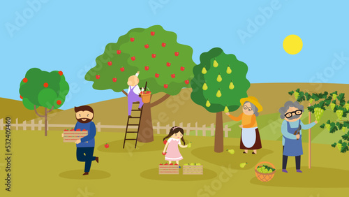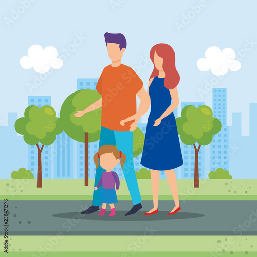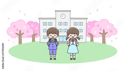 Vector illustration of father taking his daughter to school in the morning. Back to school. Flat style design.