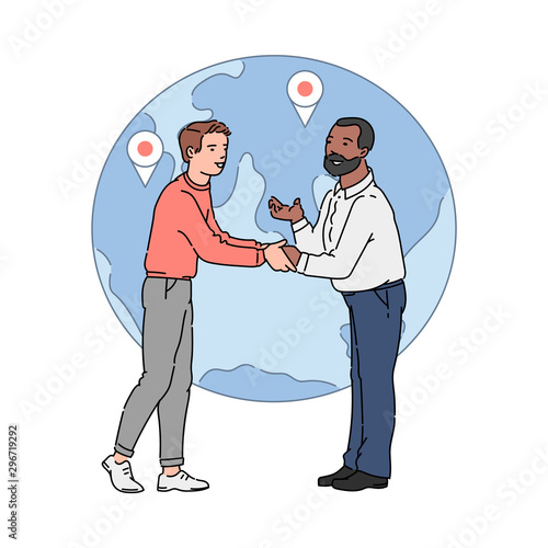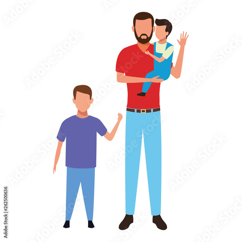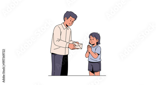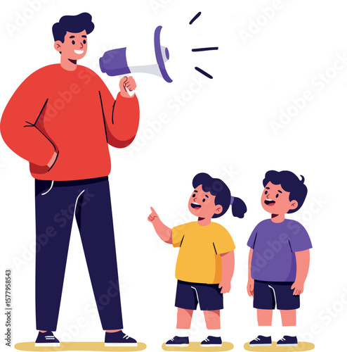 Flat cartoon father talking to little boy son vector illustration isolated on white background. Nice conversation and friendly talk with children concept