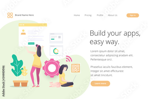 Female artist painting on easel. Art theraphy concept illustration. Vector web site design template. Landing page website illustration.