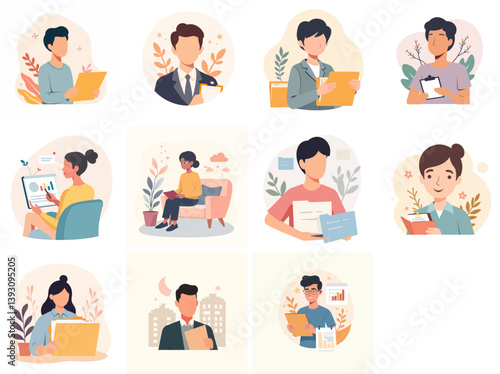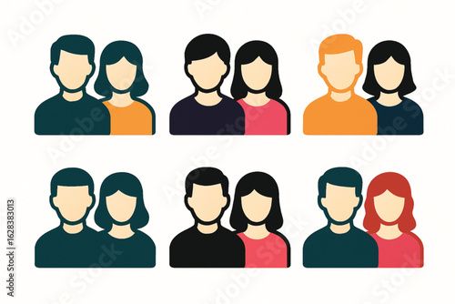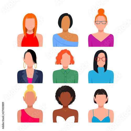 Female avatar icons vector set. People characters in flat style. Design elements isolated on background. Faces with different styles and nationalities.