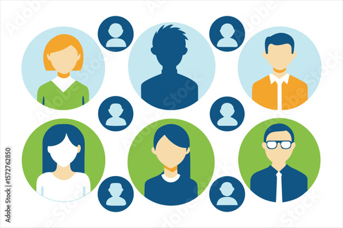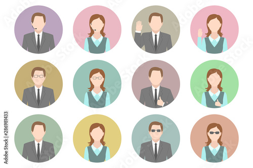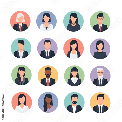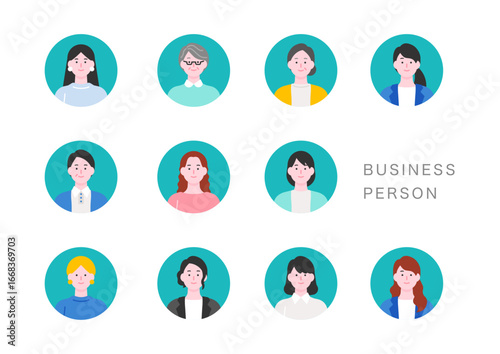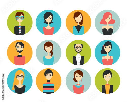 Female avatar icons vector set. People characters in flat style. Design elements isolated on background. Faces with different styles and nationalities.