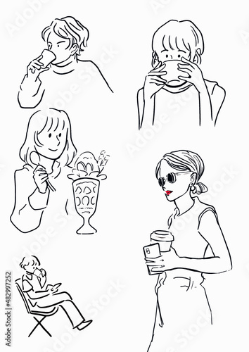 Female body painful zone set, vector illustration. Sick patient body parts hurt areas with red pain dots. Migraine, headache, backache, stomach, foot, wrist, shoulder ache, menstrual pain.