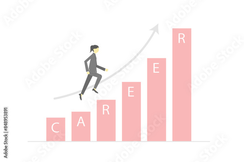 Female boss leader standing on bar chart top and male employee falling down from it, flat vector illustration. Feminism concept.