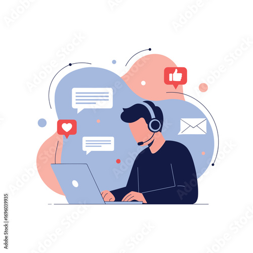 Female graphic designer experiencing creative crisis or block, flat vector illustration. Woman sleeping sitting at table in front of laptop. Creativity crisis, anxiety, fatigue, headache, depression.