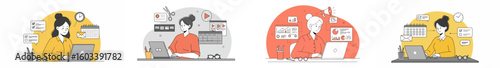 Neonatal resuscitation. Female doctor standing next to newborn baby in incubator, flat vector illustration. Newborn resuscitation.