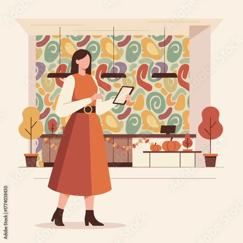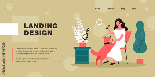Female fashion designer create new dress collection. Woman sewing handmade clothes. Concept illustration. Vector web site design template. Landing page website illustration.