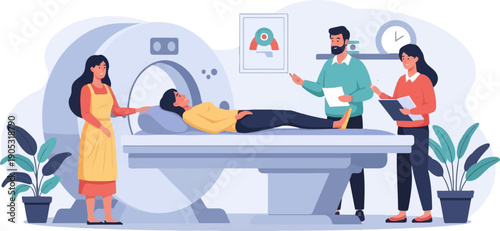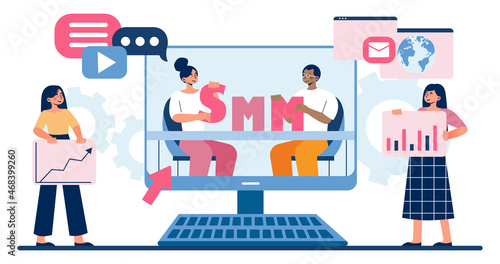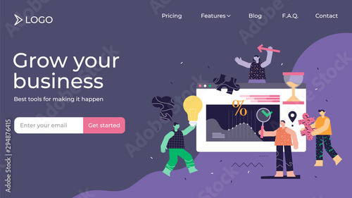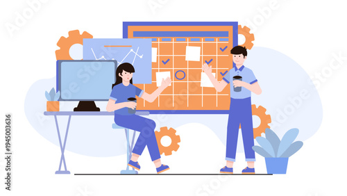 Movie production scene vector illustration. Huge clapperboard and micro characters shooting film. Cinematography, movie industry, filmmaking concept for web banner, website page etc.