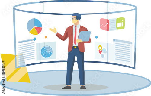 Financial investments concept vector flat illustration. Business people searching for investor.