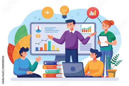 Vector illustration of tiny characters putting dollar coins, card into huge piggy bank. Business and finance, making and saving money, financial investment concept for web banner, website page etc.