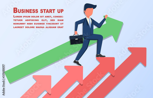 Businessman walking up stairs to trophy cup, vector paper cut illustration. Financial success, business strategy, growth, leadership way to success concept for web banner, website page etc.