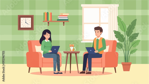 Vector illustration of two young woman having dinner at restaurant. Fine dining concept design element in flat style.