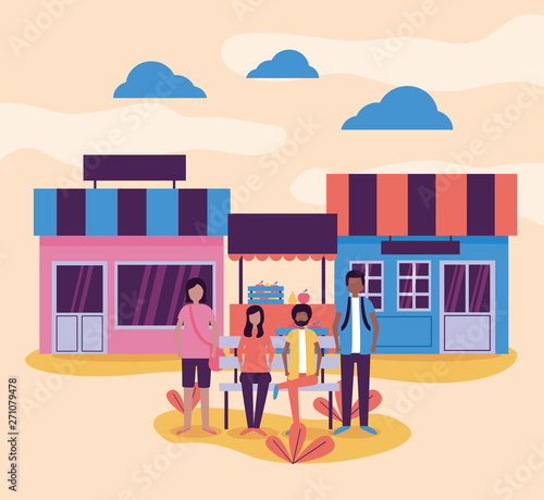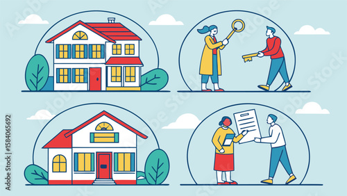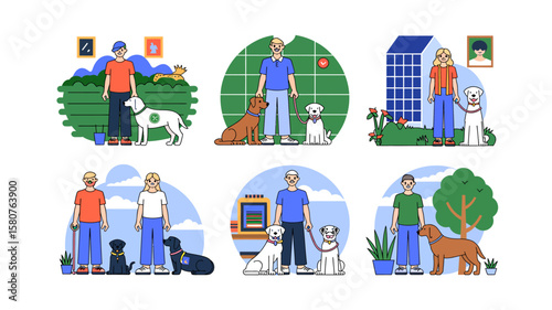 Fired people icon set. Vector flat illustration of sad dismissed former employees because of losing their jobs, employer pointing to the door. Laid-off office workers. Dismissal, unemployment concept.