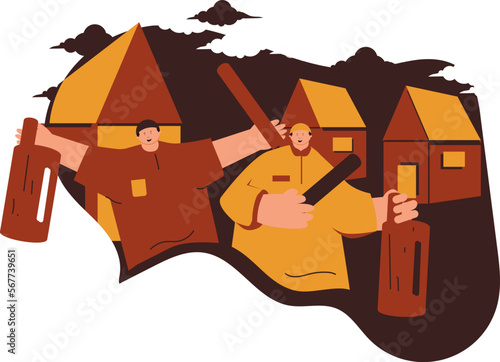 Firefighter vector. Fireman rescue team using extinguisher hose pouring water on fire paper cut 3d icon. Emergency help, firefighting and teamwork illustration