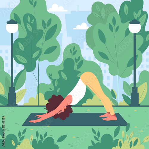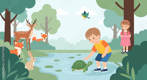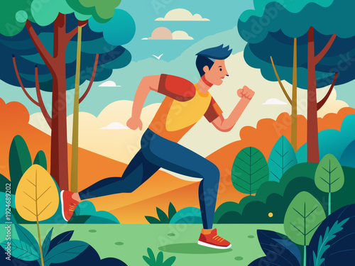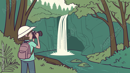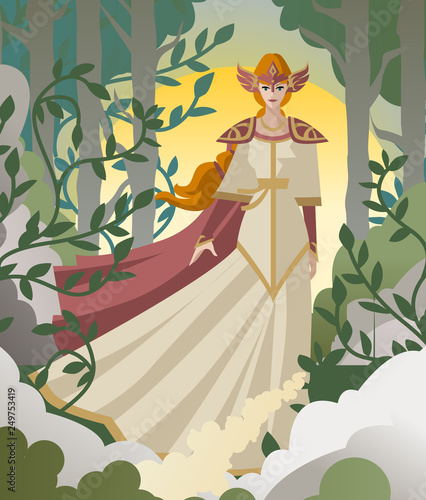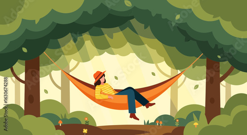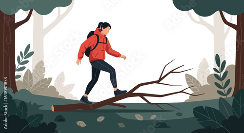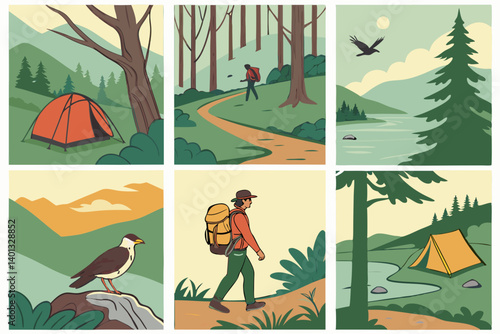 Fireman character in protective clothing and helmet with water hose extinguishing forest on fire vector scene. Dangerous wildfire outbreak and remedial measures illustration