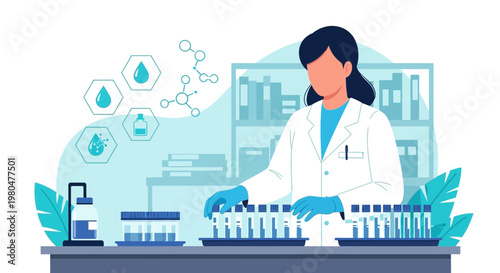 Fish store, flat vector illustration. Saleswoman standing at display fridge counter with fresh and tinned fish. Fishmonger shop, market. Supermarket, grocery store seafood section, department.
